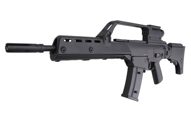 Jing Gong is a rifle that comes loaded with features such as folding stock and bipod which can be easily retracted to its handguard. This AEG is made of high strength Polymer Body and with scope and red dot sight