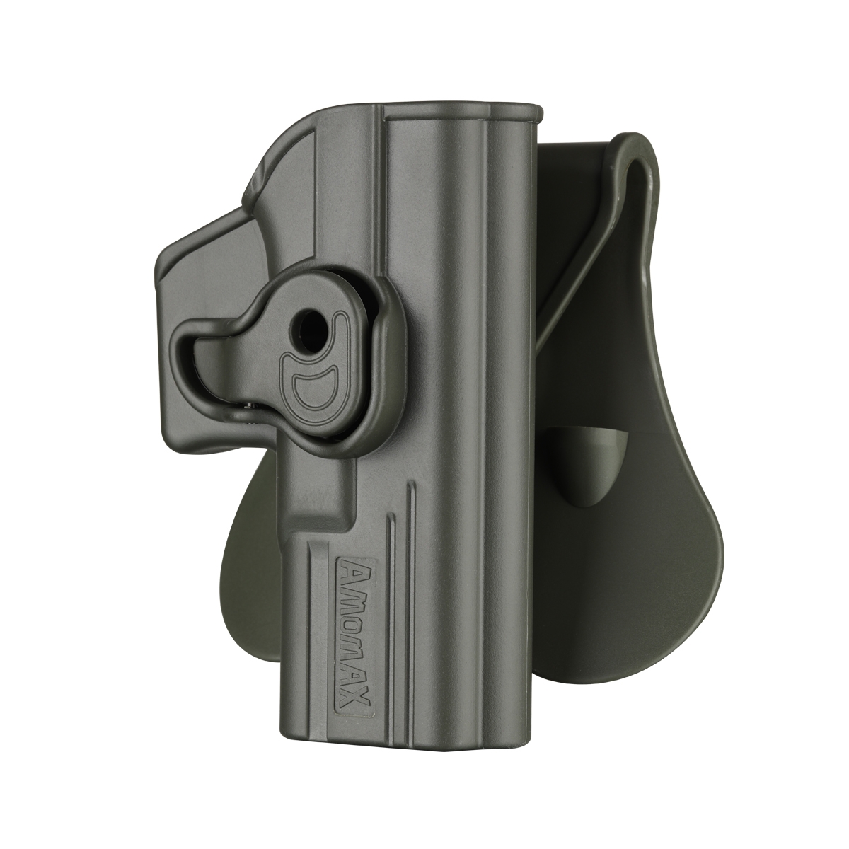Amomax holster is compatible with 4 different carrying platforms –paddle (standard), belt clip, MOLLE, and drop leg platform.