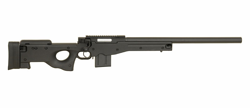 L96 AWS replica is a spring-action, bolt-action replica of a sniper rifle. The cradle of the rifle is very solid and made from high quality reinforced polymer. The stock has a thick rubber stock pad. The cradle features two metal tactical sling swivels and a removable bow for the attachment of a bipod. The replica comes fully assembled, which eliminates the need for independent assembly.