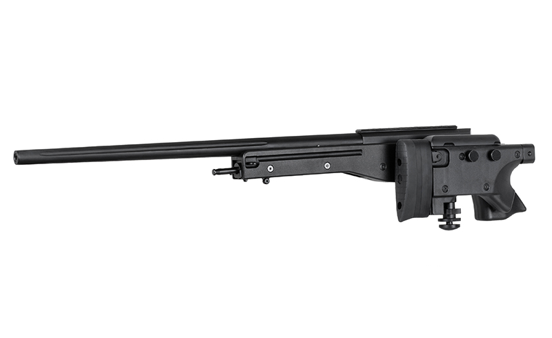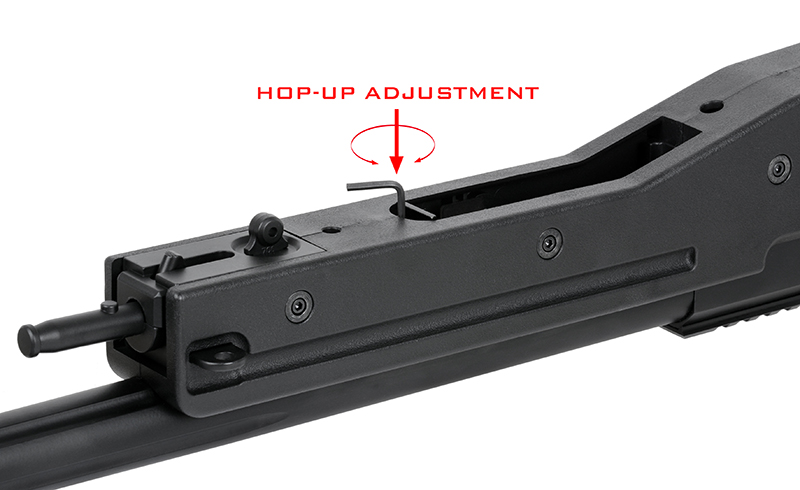 The body is equipped with a left-side folding stock to reduce the overall length of the rifle, making it easy to storage and transport.