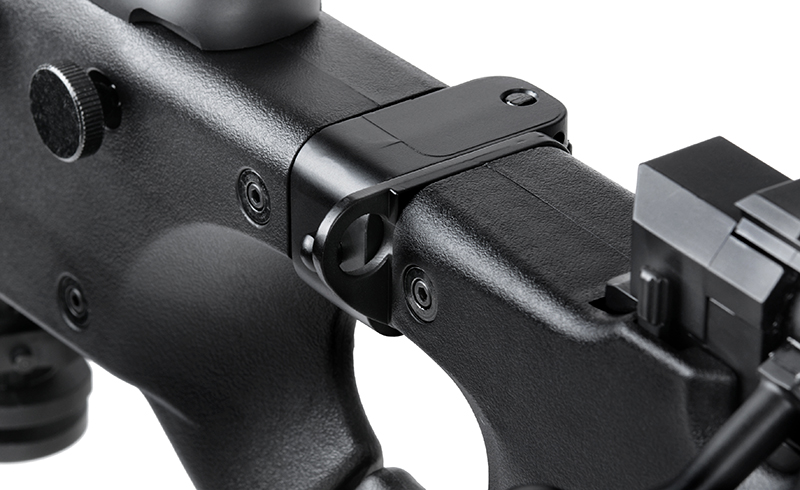 The replica includes also sling mounts and a polymer magazine with a capacity of 20 BBs.