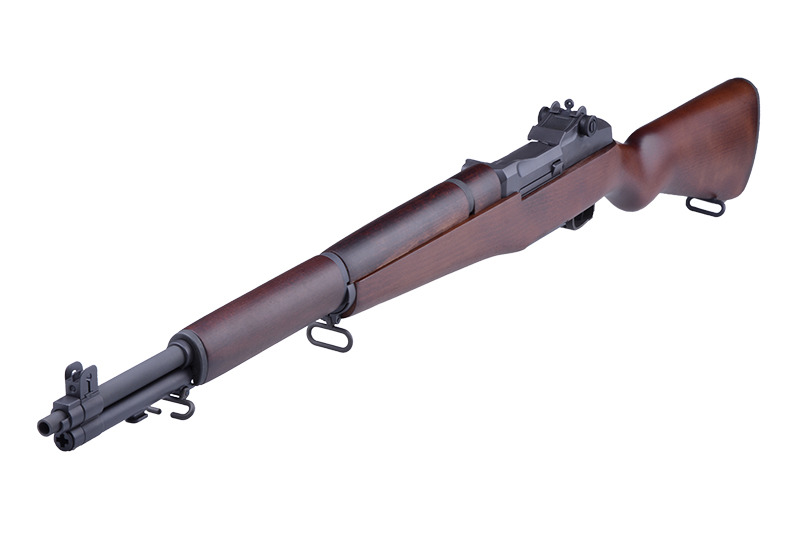 A replica of the very first semi-automatic rifle in the world introduced as standard issue in the United States Army. This classic weapon in airsoft version was manufactured by an acclaimed G&G company. The replica was made from metal and wood. The cradle together with the stock and barrel cover were made from wood – thanks to varnishing a walnut shade was achieved that provides the replica with additional amount of character. Vulnerable spots were made from steel.