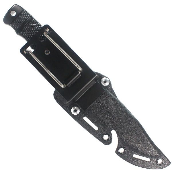 Plastic and rubber Construction (Rubber made blade with plastic handle and sheath).