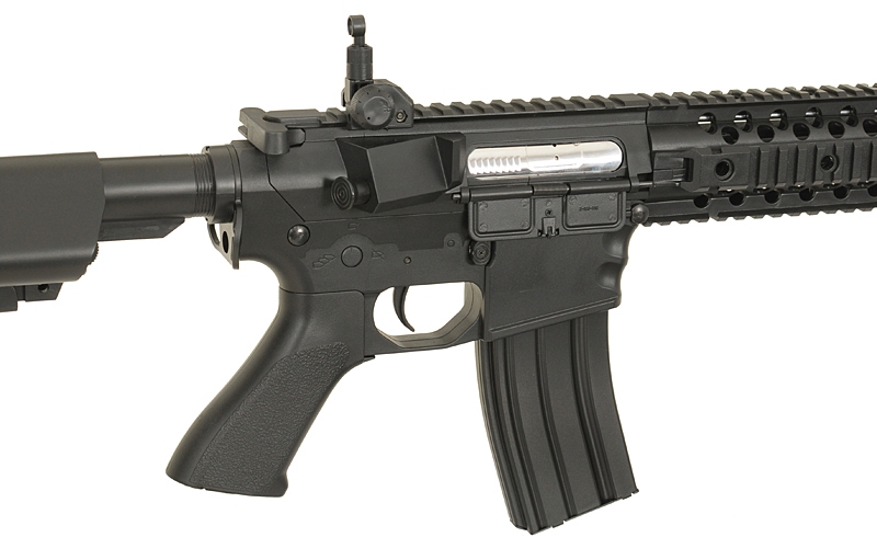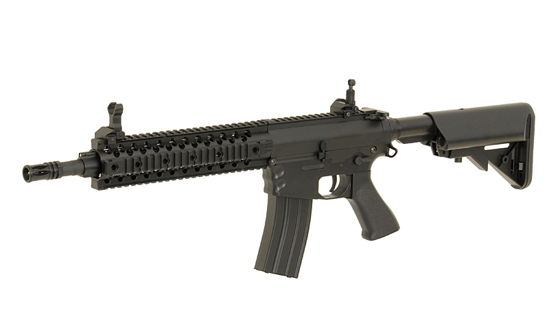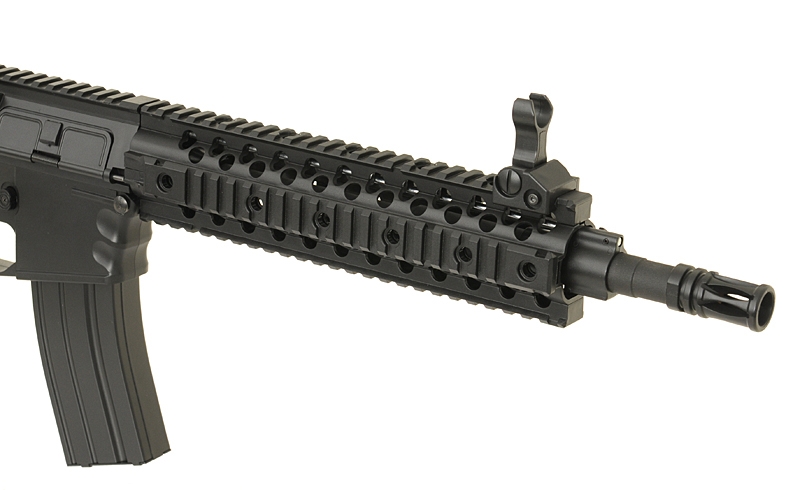 Replica of a new series of low-budget rifles one of the most popular Chinese manufacturers in the world – CYMA. The rifle offers the same things as the other products of that manufacturer (metal gearbox and other mechanical parts), but thanks to the use of high-quality plastic in place of elements made of metal (eg. body, handguard, front/rear sights, buffer tube, flash hider, magazine) allowed reduced the price. Now, every beginner will be able to afford to buy their favorite rifle and start the adventure.