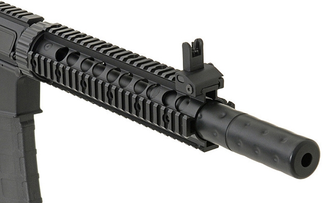 Electric Airsoft Gun. Replica M4 SD [CM.070] all-metal design with integrated silencer and free float RAS forearm (KAC), which allows the use of tactical accessories. The ever-popular CYMA brand, after successful versions of the AK and MP5 weapons, has embarked on a complete range of popular M16 / M4 weapons. By its processing, this brand did not disappoint again, and thus continues to hold its popularity with the wide airsoft public.