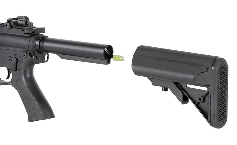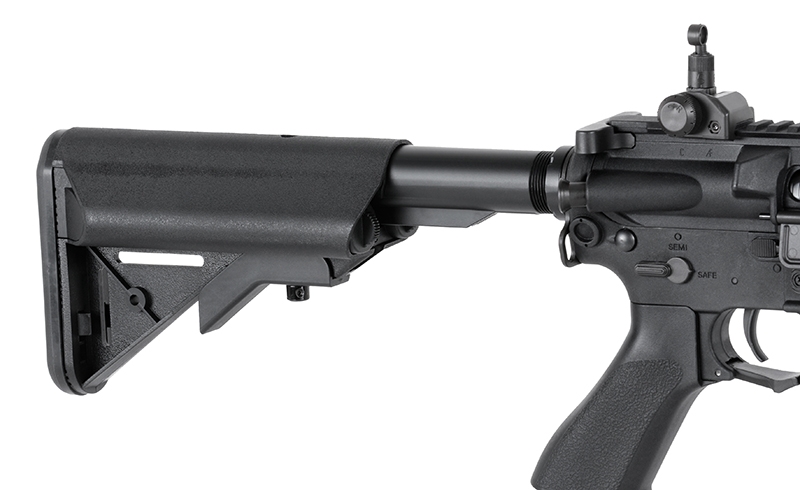 Each carabine has a power of 410 fps and a faster trigger response, which gives you the possibility to provide fire on the middle distance. All thanks to used internal parts, such as: