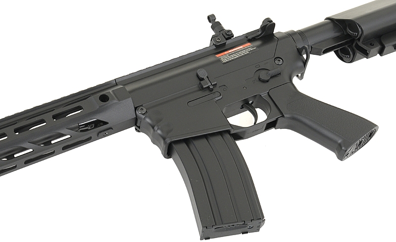 M4 w/ Custom Muzzle Break is an Airsoft 6mm BB Gun, which is based on the M4 / AR Platform, with lots of custom external components which come together to create one unique looking piece. The rifle is constructed mainly from Polymer, with a Polymer Receiver, Sling Plate, Buffer Tube, Hand Guard and Pistol Grip with Alloy Barrel and Internals. The weapon comes pre-fitted with a unique looking Hand Guard and Compensator, which can be removed by releasing the two screws at the front of the rail, allowing the compensator to be simply pulled off to reveal a 14mm CCW Thread and standard M4 / AR Flash Hider for attaching Silencers and Suppressors. The weapon features a highly customisable top rail, which in total is 21” in length, and fits together like on piece, allowing for a huge variety of Sight and Scope setups, as well as Magnifier and Holographic Setups. The Hand Guard also features two 3” and a bottom 3” 20mm RIS / RAS Rail for attaching Grips, Bipods, Torches and Lasers to your weapon. The rifle is rear-wired, meaning batteries are stored in the 6 position adjustable crane stock, which accepts crane / butterfly style batteries. The Stock also features a rubberised Butt Plate which prevents slippage whilst wearing large rigs and vests. This rifle is perfect for those who are beginning out in Airsoft, and are looking for a unique looking piece which will make them stand out on the field.