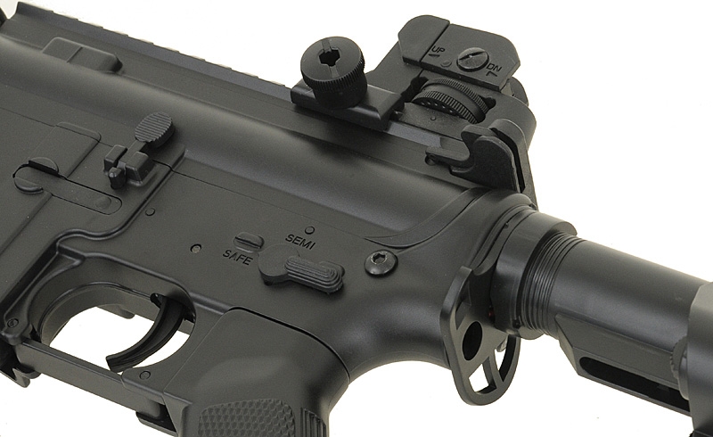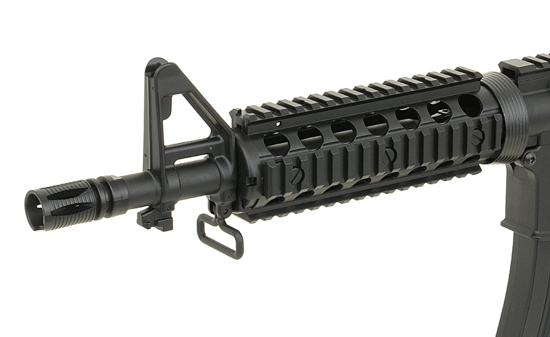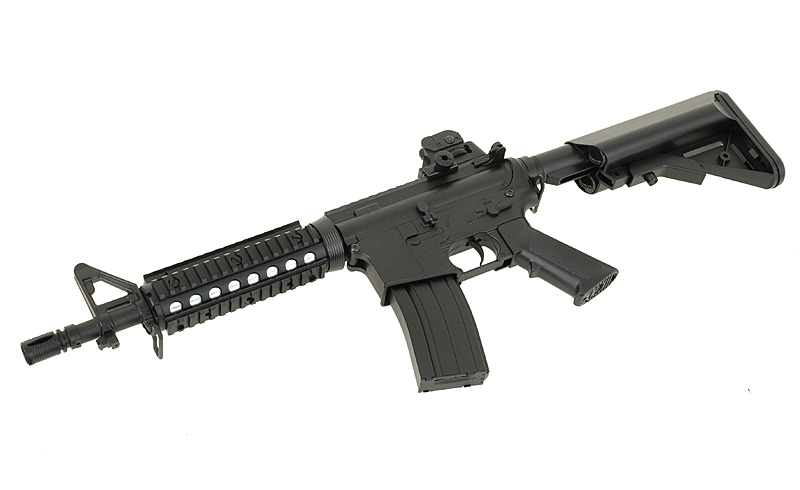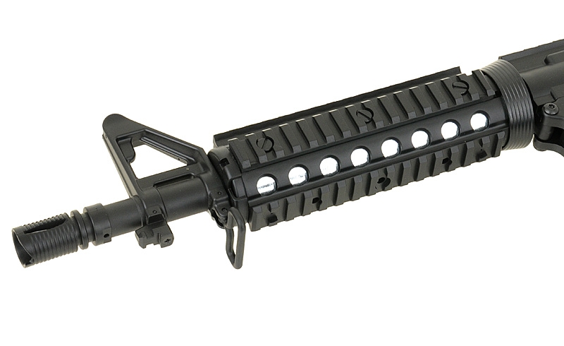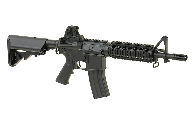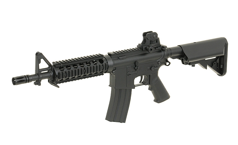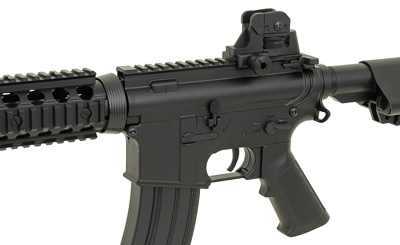 Replica of a new series of low-budget rifles one of the most popular Chinese manufacturers in the world – CYMA. The rifle offers the same things as the other products of that manufacturer (metal gearbox and other mechanical parts), but thanks to the use of high-quality plastic in place of elements made of metal (eg. body, handguard, front/rear sights, buffer tube, flash hider, magazine) allowed reduced the price. Now, every beginner will be able to afford to buy their favorite rifle and start the adventure with reliable replica for lower price.