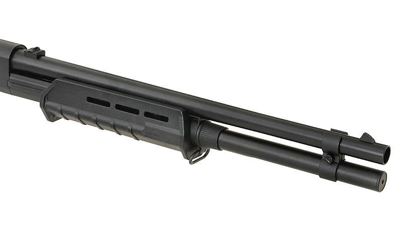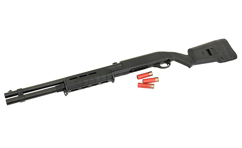 Great replica in scale 1: 1 of one of the most popular shotgun, used by civilians, police or military. The replica has been produced by CYMA specialy for the airsoft market. Just like in other replica from that producer, rifle has a reliable mechanism in this case a pump action system powered by a spring. This Shotgun is present in 2 category: low-budget with a ABS construction (stock, receiver, fore end, action bar, tubular magazine) and for the players who want realism a full metal version (receiver, cross bolt safety, trigger, trigger guard, magazine loading port, barrel, action bar, tubular magazine). The both version after the reload can shoot simultaneously 3 BBS at each shoot. In the set with replica you have a magazine type shotshell for 30BBs and a speed loader.