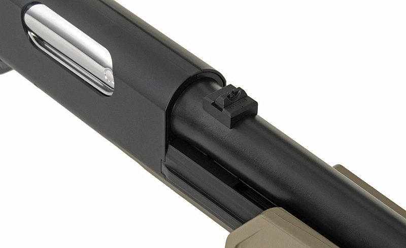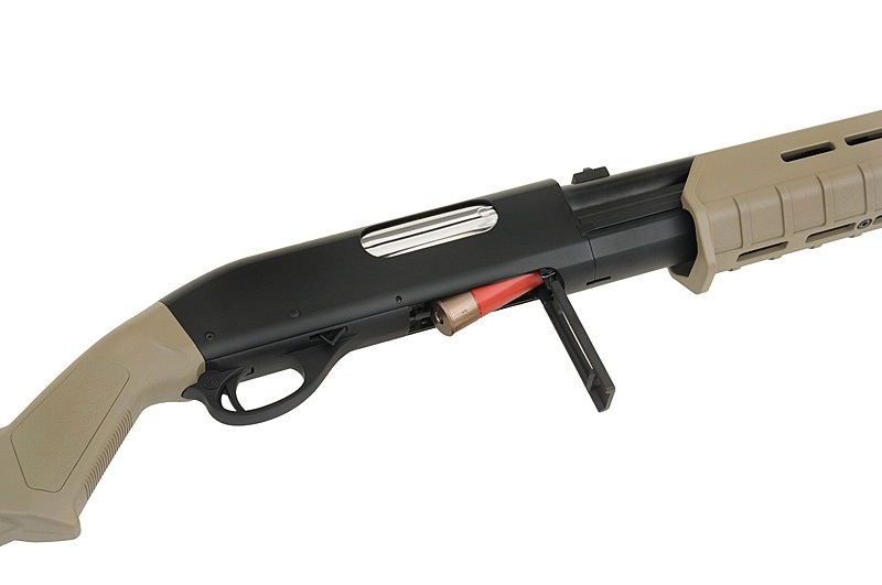 Great replica in scale 1: 1 of one of the most popular shotgun, used by civilians, police or military. The replica has been produced by CYMA specialy for the airsoft market. Just like in other replica from that producer, rifle has a reliable mechanism in this case a pump action system powered by a spring. This Shotgun is present in 2 category: low-budget with a ABS construction (stock, receiver, fore end, action bar, tubular magazine) and for the players who want realism a full metal version (receiver, cross bolt safety, trigger, trigger guard, magazine loading port, barrel, action bar, tubular magazine). The both version after the reload can shoot simultaneously 3 BBS at each shoot. In the set with replica you have a magazine type shotshell for 30BBs and a speed loader.