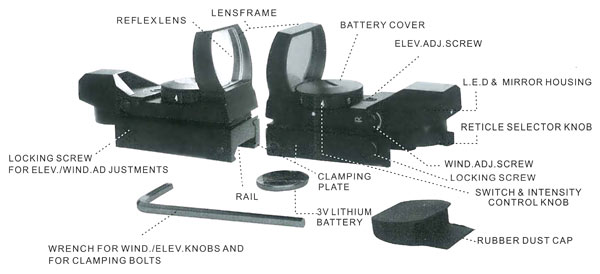 35mm reflex lens aperture provides a wide field of view, suitable for rapid-fire, moving target besides normal shooting.