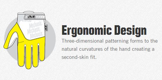 Three-dimensional patterning conforms to the natural curvatures of the hand.