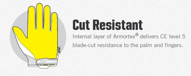 Internal layer of Armortex® delivers CE level 5 blade-cut resistance to the palm and fingers.