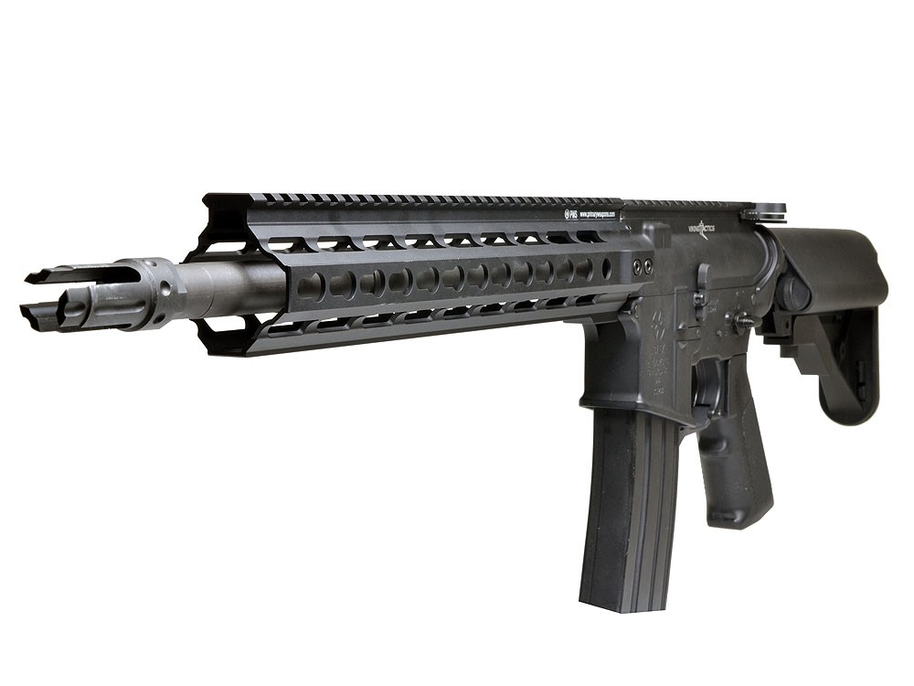 The Madbull licensed PWS Airsoft DI Key-Mod Handguard Rail can upgrade your rifle with designed ergonomic as well as durable. The product features key-mod interface system enhances the rail’s comfort and functionality without the need for Picatinny rails surrounding your handguard. The product also offer a true free floated handguard that removes unnecessary weight and allows for a wide range of accessory placement; furthermore, the integral sling swivel attachment points round out the front and back of the handguard. The DI Key-Mod Handguard Rail come is a variety of lengths: 10” 12” and 15”.