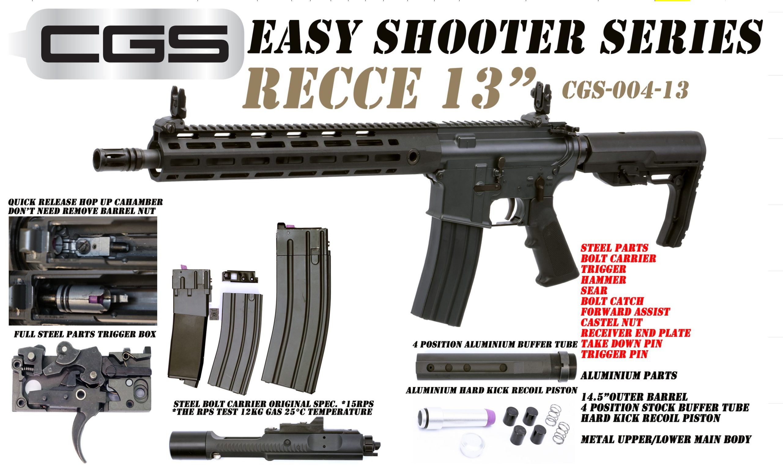 The CGS (CYMA Gas System) Series is a brand-new design featuring our greatest original new tech in gas blowback rifles, our development team is powered by SP System T8 airsoft. CGS GBBR series are widely cross-compatible with the TM MWS system, it provides an excellent base gun more reliable and efficient than alternative systems!