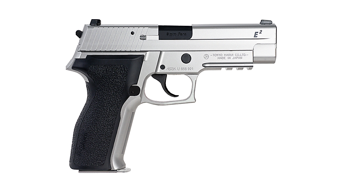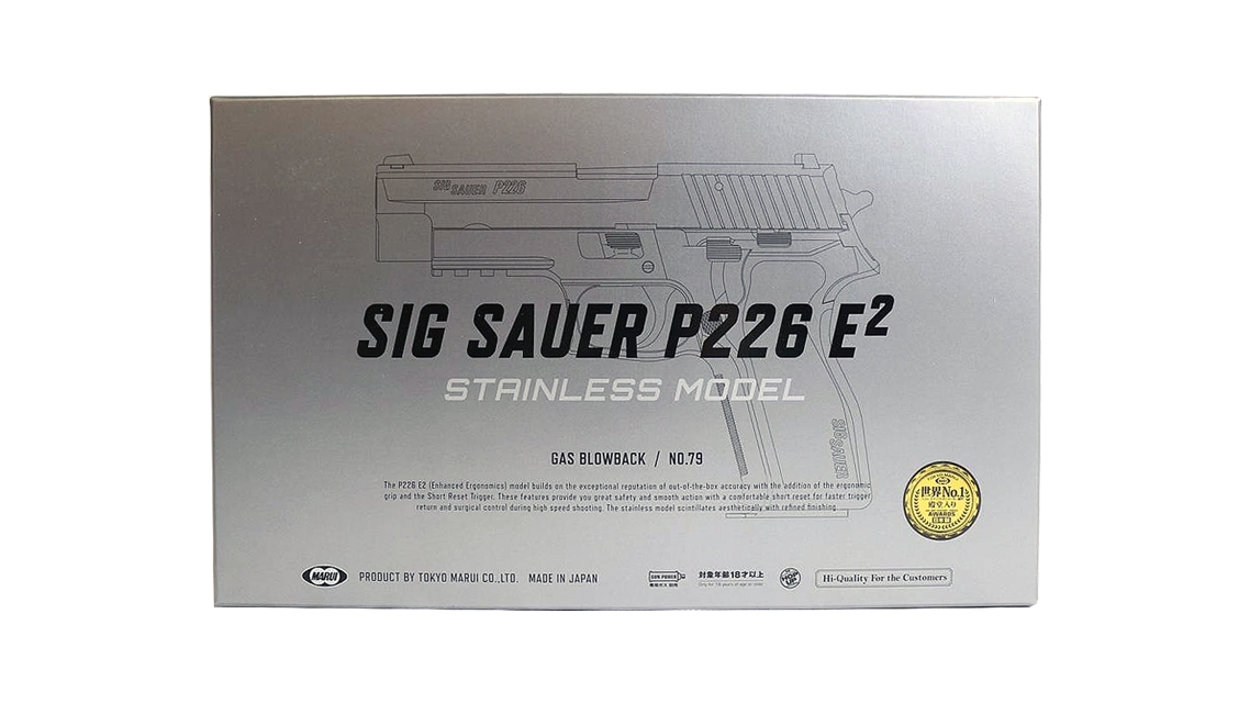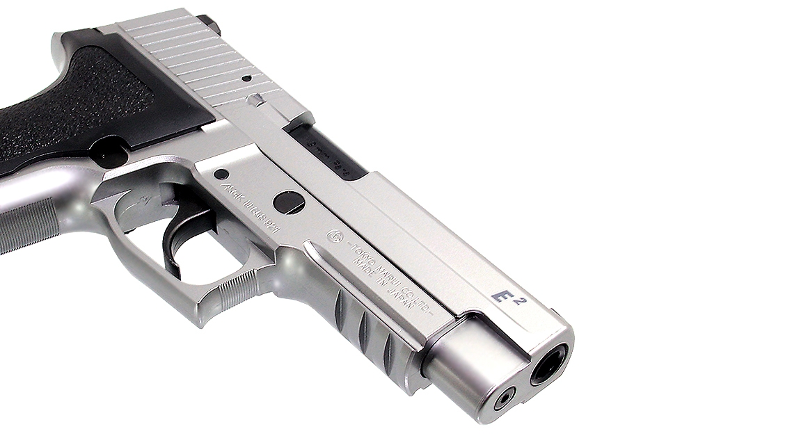 In Tokyo Marui, following “P226 rail” equipped with rails and its improved model “P226E2”, “P226E2 stainless steel model” adopted stainless steel silver color for slide and frame appeared in the lineup.