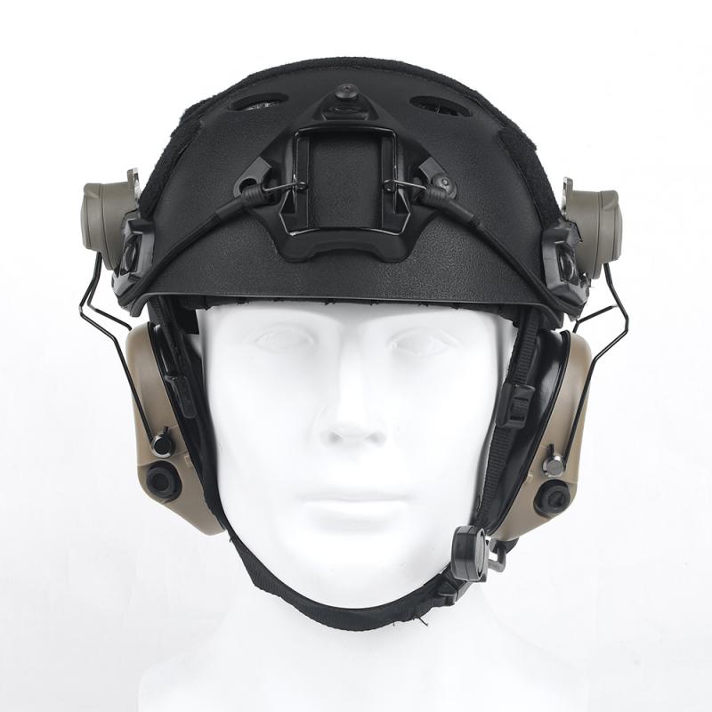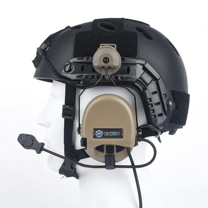 Similar headset as used by military special forces. Military standard version plug.·Slim design cups for both right and left-handed shooters. Low profile design allow wearing under helmet or headwear. Amplifier for the surrounding sound, operated by 1x AAA battery with waterproof battery cap