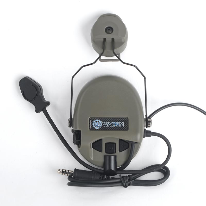 Similar headset as used by military special forces. Military standard version plug.·Slim design cups for both right and left-handed shooters. Low profile design allow wearing under helmet or headwear. Amplifier for the surrounding sound, operated by 1x AAA battery with waterproof battery cap