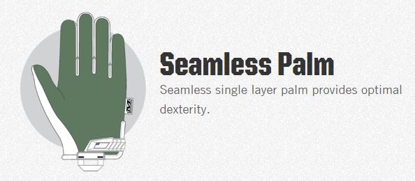 Seamless single layer palm provides optimal dexterity.