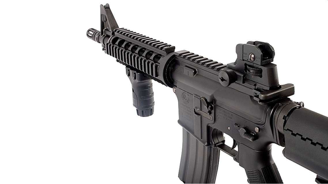 The MK3 SPR-M utilizes a standard AR-15 lower and upper receiver, which is well-known for its excellent ergonomics and aftermarket parts compatibility. The replica accepts standard AR-15-pattern magazines.