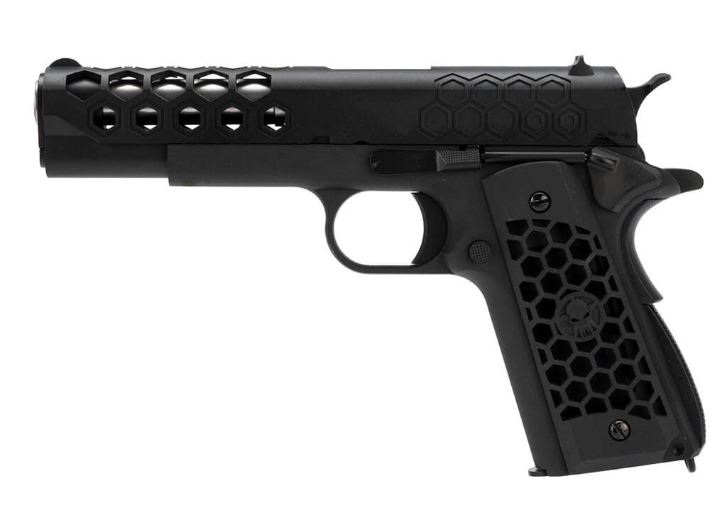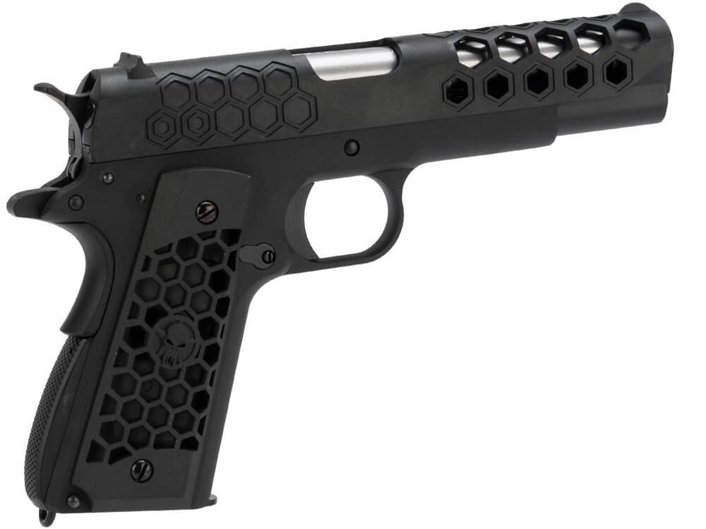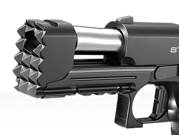 -[Unique V port] Reproduce the 10 ports opened in the cone barrel and the large scooped slide. It is a compact yet powerful style. [Die-cast rear sight officially approved by Novak] You can experience the high practicality of Novak site, which is said to be the treasure of tactical sight.