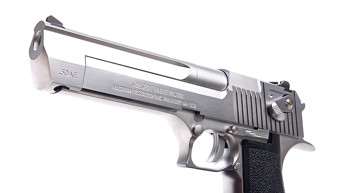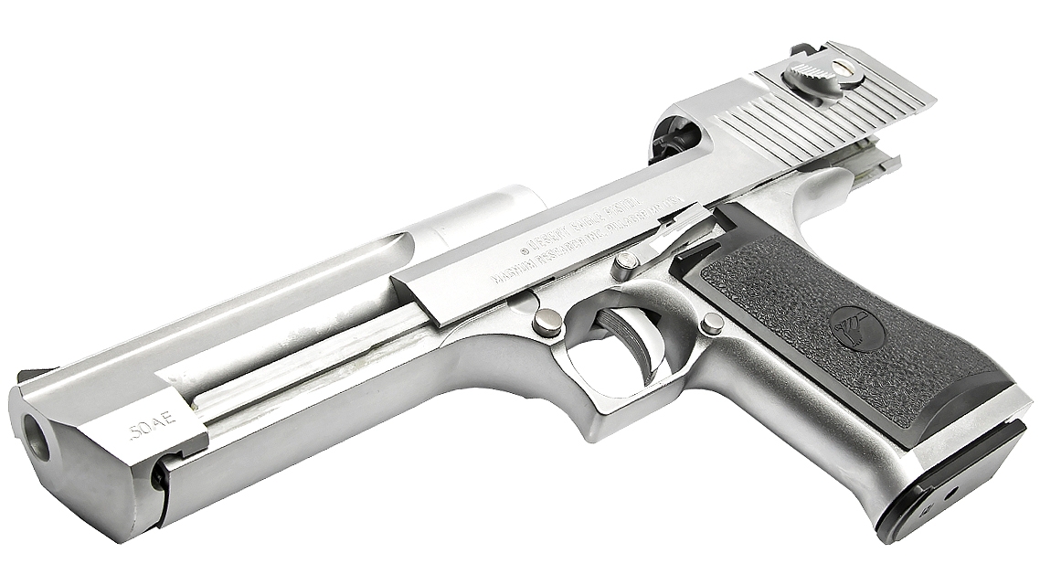 The IMI Desert Eagle is a powerful Semi-automatic pistol designed by Israel Military Industries in Israel and redesigned by Magnum Research Inc, of the United States of America. It has become an icon of both films and video games the world over, with its triangular barrel and gaping muzzle. Over the past 25 years, MRI has been responsible for the design and development of the Desert Eagle pistol. The design was refined and the actual pistols were manufactured by Israel Military Industries until 1995, when MRI shifted the manufacturing contract to Saco Defense in Saco, Maine. In 1998, MRI moved manufacturing back to IMI, which later reorganized under the name Israel Weapon Industries. Both Saco and IMI/IWI were strictly contractors: all of the intellectual property, including patents, copyrights and trademarks, are the property of Magnum Research. Since 2009, the Desert Eagle Pistol has been produced in the United States at MRI’s Pillager, MN facility. Kahr Arms acquired Magnum Research in the middle of 2010. The Desert Eagle has been featured in roughly 500 motion pictures and TV films, along with several video games (especially the Grand Theft Auto series), considerably increasing its popularity and boosting sales.