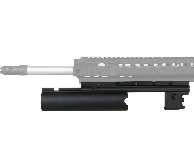 Full metal grenade launcher with possibility of mounting on any conventional 20mm RIS rail. For example, under the foregrip of your rifle. The grenade launcher is capable of firing standard 40mm gas grenades.